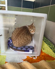 The pair went over 3 weeks with minimal human interaction, as many staff members noted them as being "mean." This is a common occurrence when staff are not properly trained on recognizing stress behaviors in cats. We decided to load these two up and bring them to our hotel for a few nights of peace, quiet, and socialization. The first night, they both hid and did not eat. By the second night, they slowly came out of their shell, relieved to finally receive love and attention for the first time in a while. Each day, they progressed and showed us how truly special they both were. I could not bear to bring them back to the shelter, so I decided to take them home and foster them until I could find them forever homes. Both Marley and Little Grey have since found amazing new homes and are thriving!